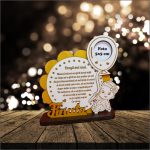 Decoratiune Cadou, Nasi Botez, Fete, Lemn, Alb, Auriu, 17x16cm, DCNS020