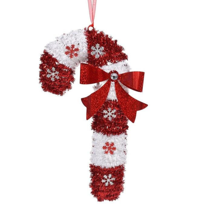 Decoratiune Craciun – Baston cu Beteala Rosie, Fulgi si Funda, 33,5cm (DCJ602)