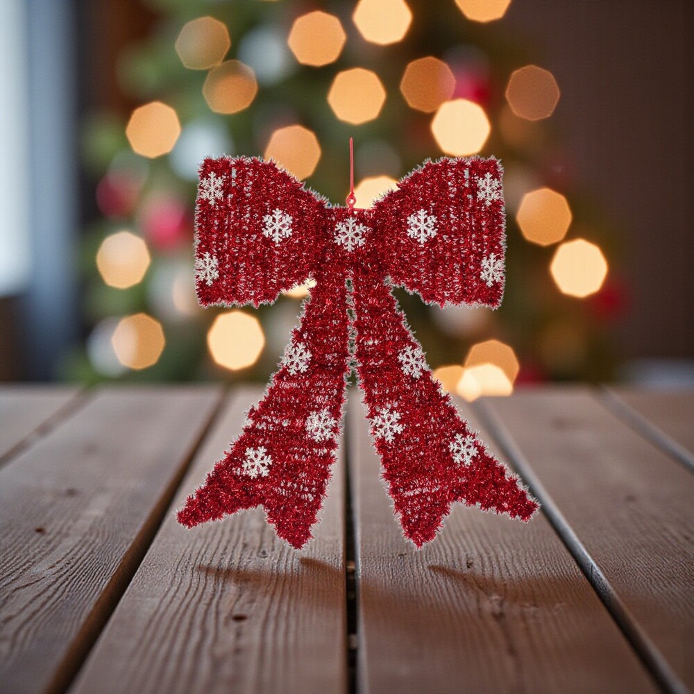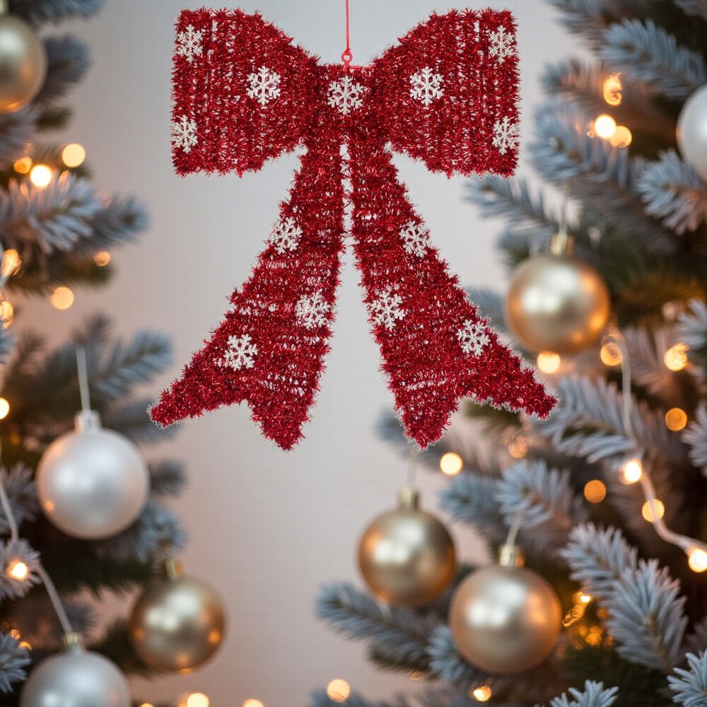 Decoratiune Craciun – Funda cu Beteala Rosie, Fulgi Albi, 45cm (DCJ618)