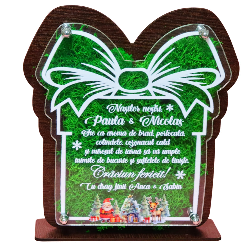 Decoratiune cu licheni, Sarbatori, Craciun, Lemn, 22x16cm, DCCRUV020