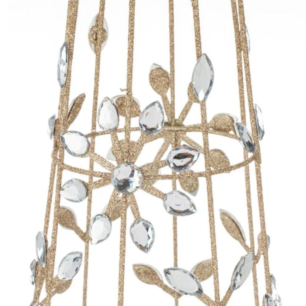 Decoratiune de Craciun, Con, Flori, Cristale, Glitter, Bej, 15x60cm, DCJ384