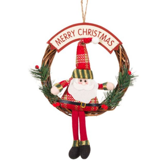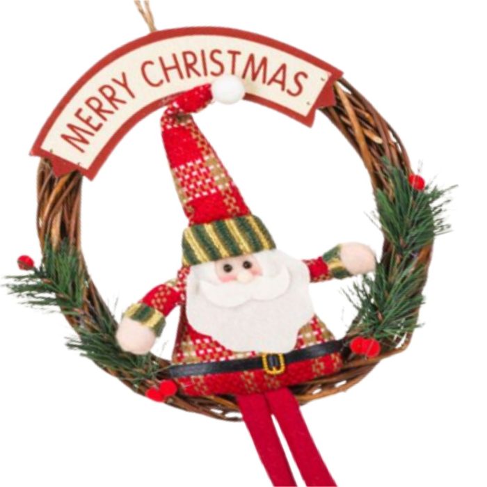 Decoratiune de Craciun, Coroana, Lemn, Mos Craciun, 20cm, DCJ090