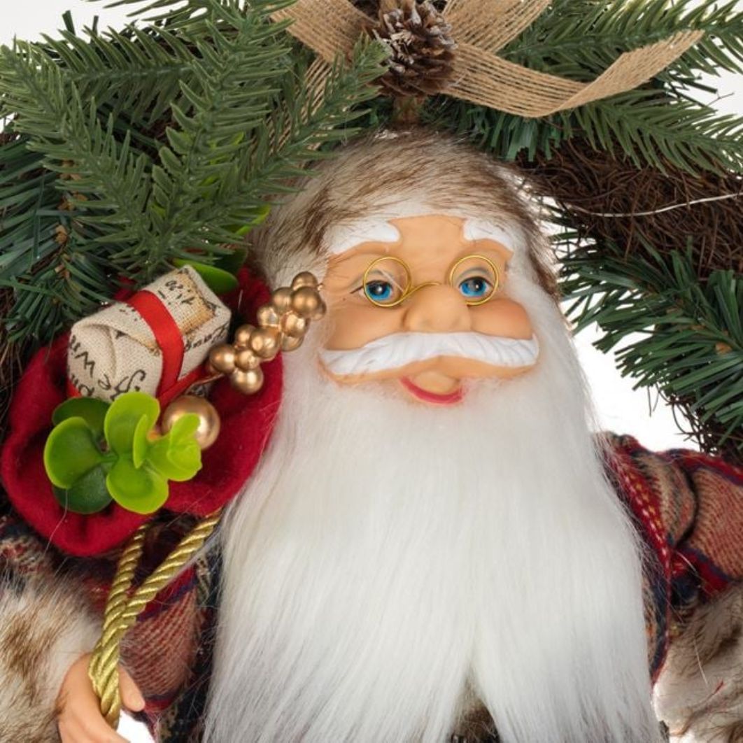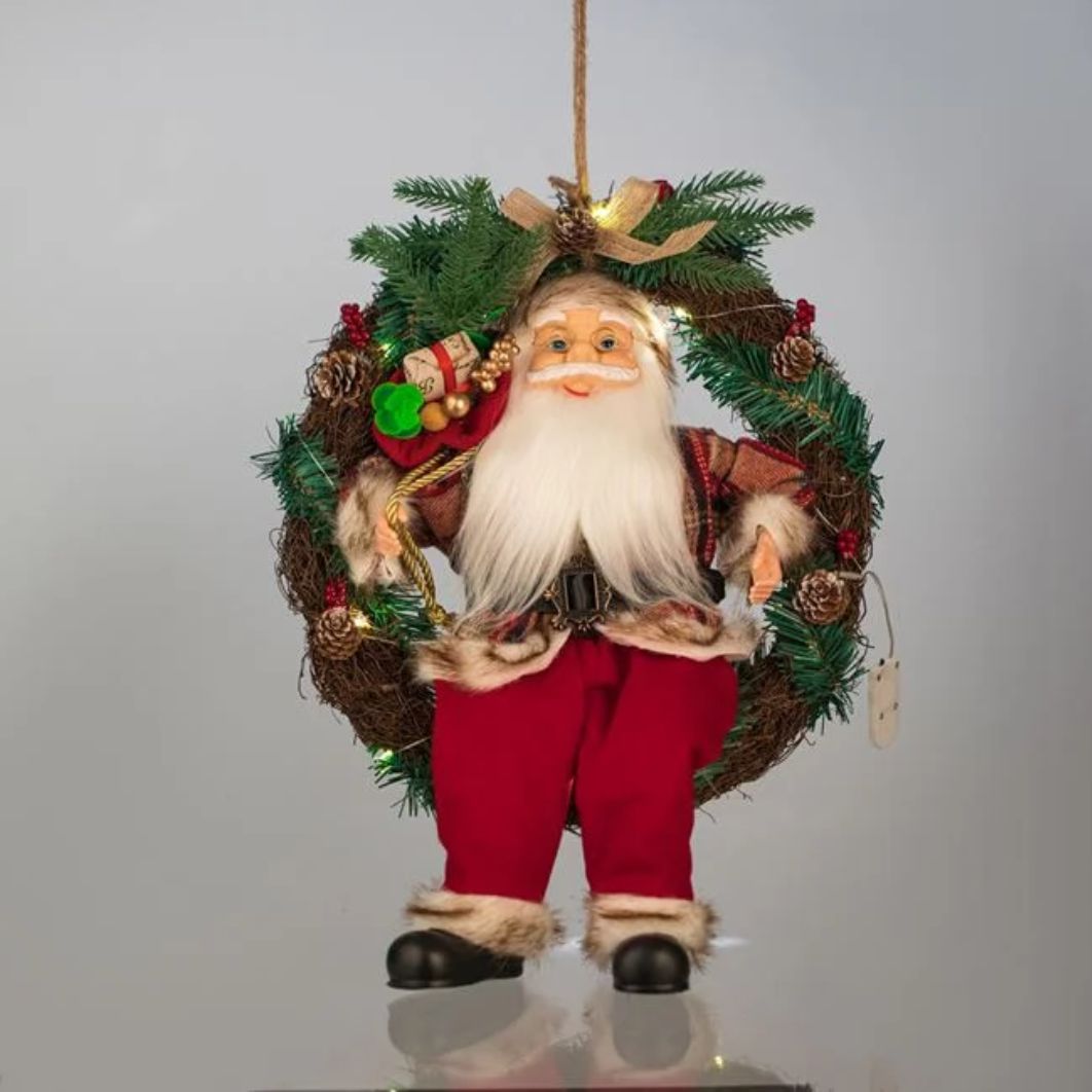 Decoratiune de Craciun, Coronita, Lemn, Mos Craciun, LED, 45cm, DCJ349
