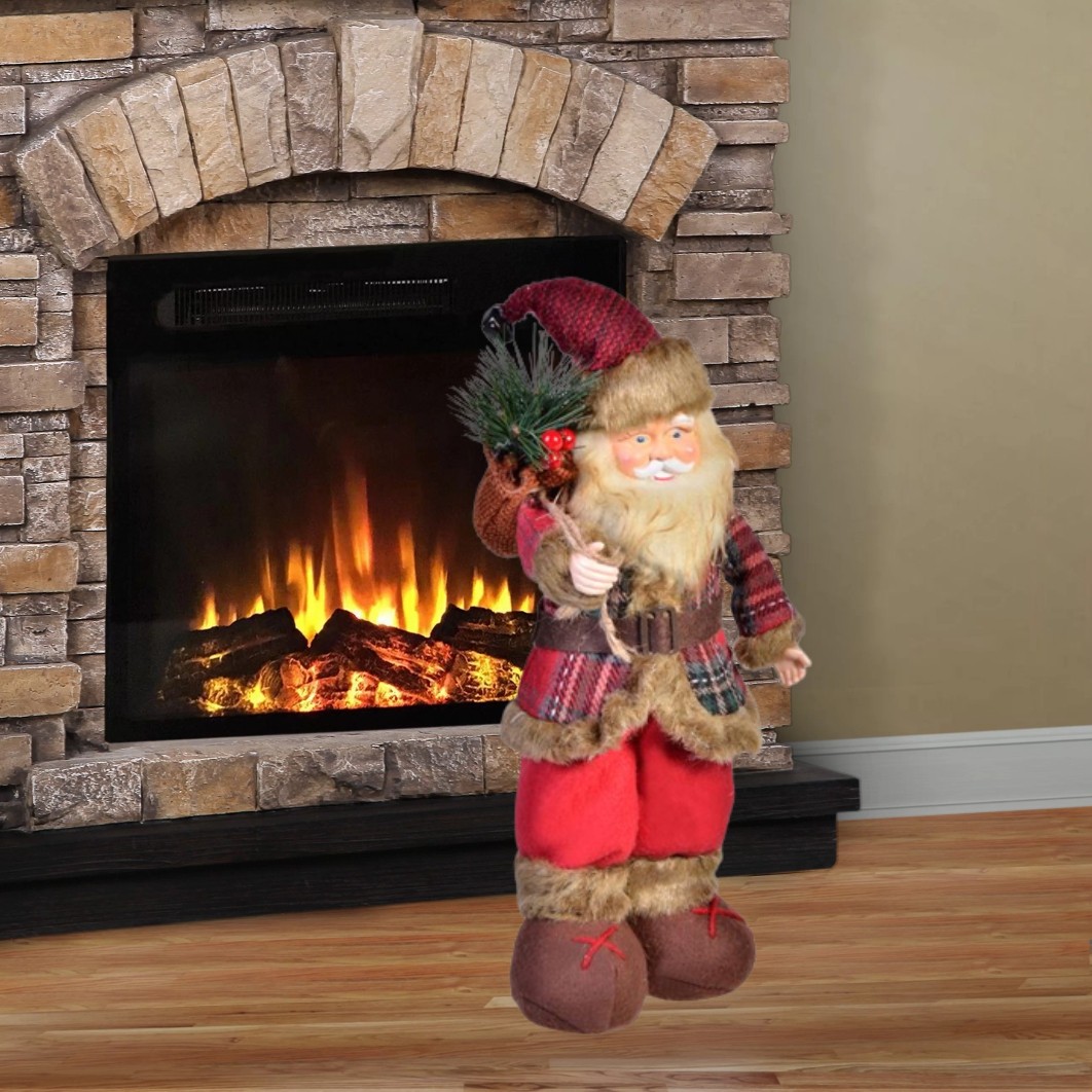Decoratiune de Craciun, Figura, Mos Craciun, Sacou, cu Carouri, 35cm, DCJ155