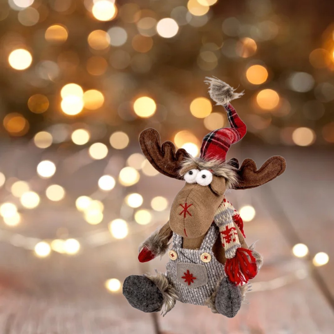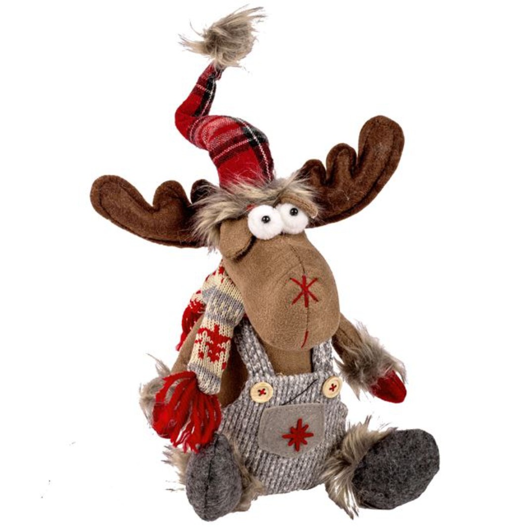 Figura decorativa de craciun, cerb cu corp gri si caciula. Puneti figura in usa, fereastra sau langa brad si completati decorul de sarbatoare! Lumea magica a Craciunului!