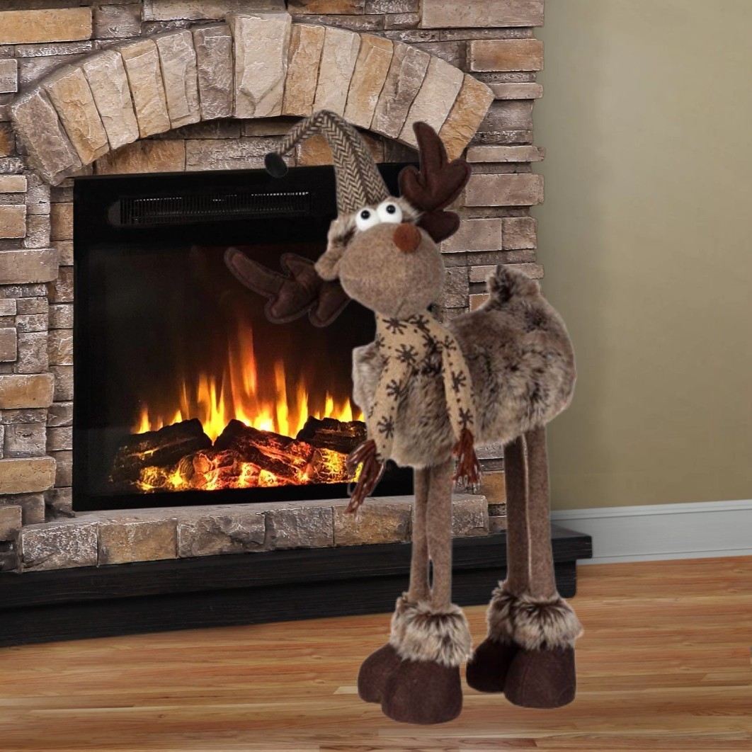 Decoratiune de Craciun, Figurina, Cerb, Maro, cu Fular, Caciula, Clopotel, 65cm, DCJ199