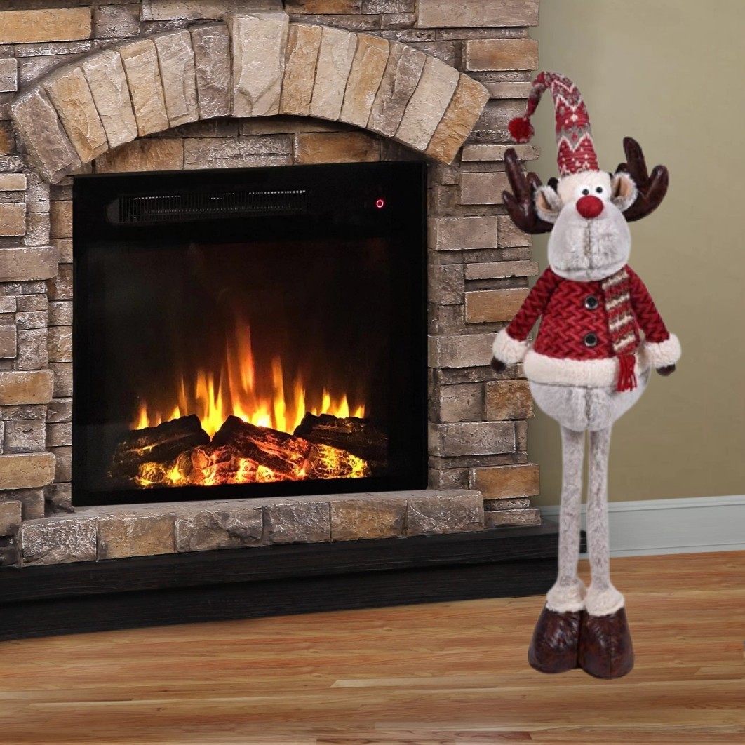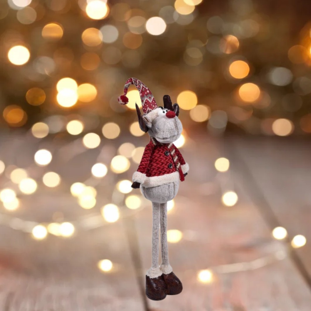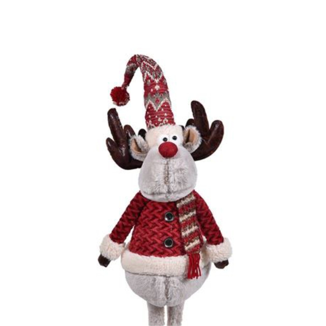 Decoratiune de Craciun, Figurina, Cerb, Panza, Gri, Corp, Haine, Rosu, 97 cm, DCJ212