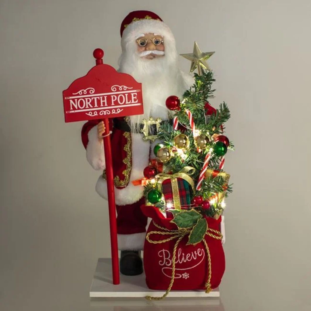 Decoratiune de Craciun, Figurina, Mos Craciun, Sac, Tablita, LED, 50cm, DCJ456
