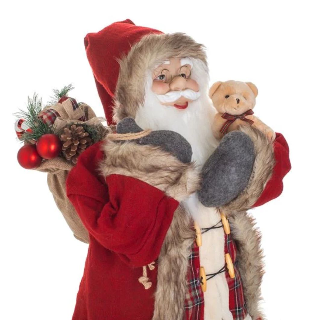 Decoratiune de Craciun, Figurina, Mos Craciun, Sac, Ursulet, 120cm, DCJ446