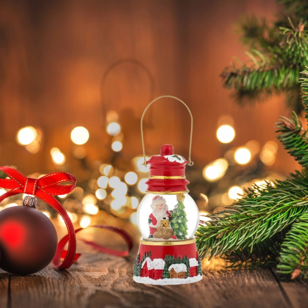 Decoratiune de Craciun, Glob Lichid, Felinar, cu Mos Craciun, Brad, Sac, Cadouri & Maner, 4cm, DCJ135