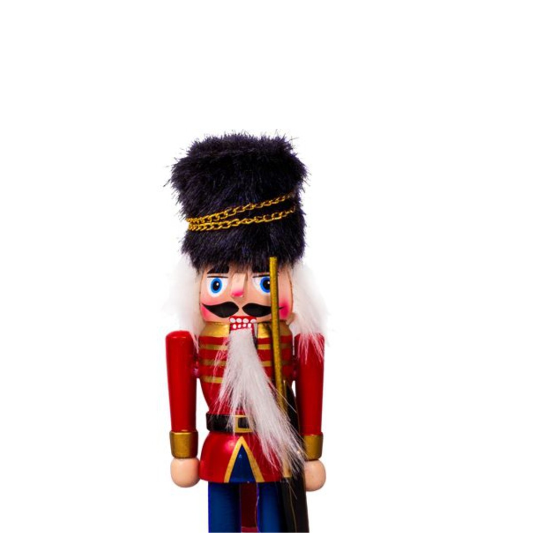 Decoratiune de Craciun, Lemn, Soldat, Caciula Neagra de Blana, Rosie Albastra, 20cm, DCJ041