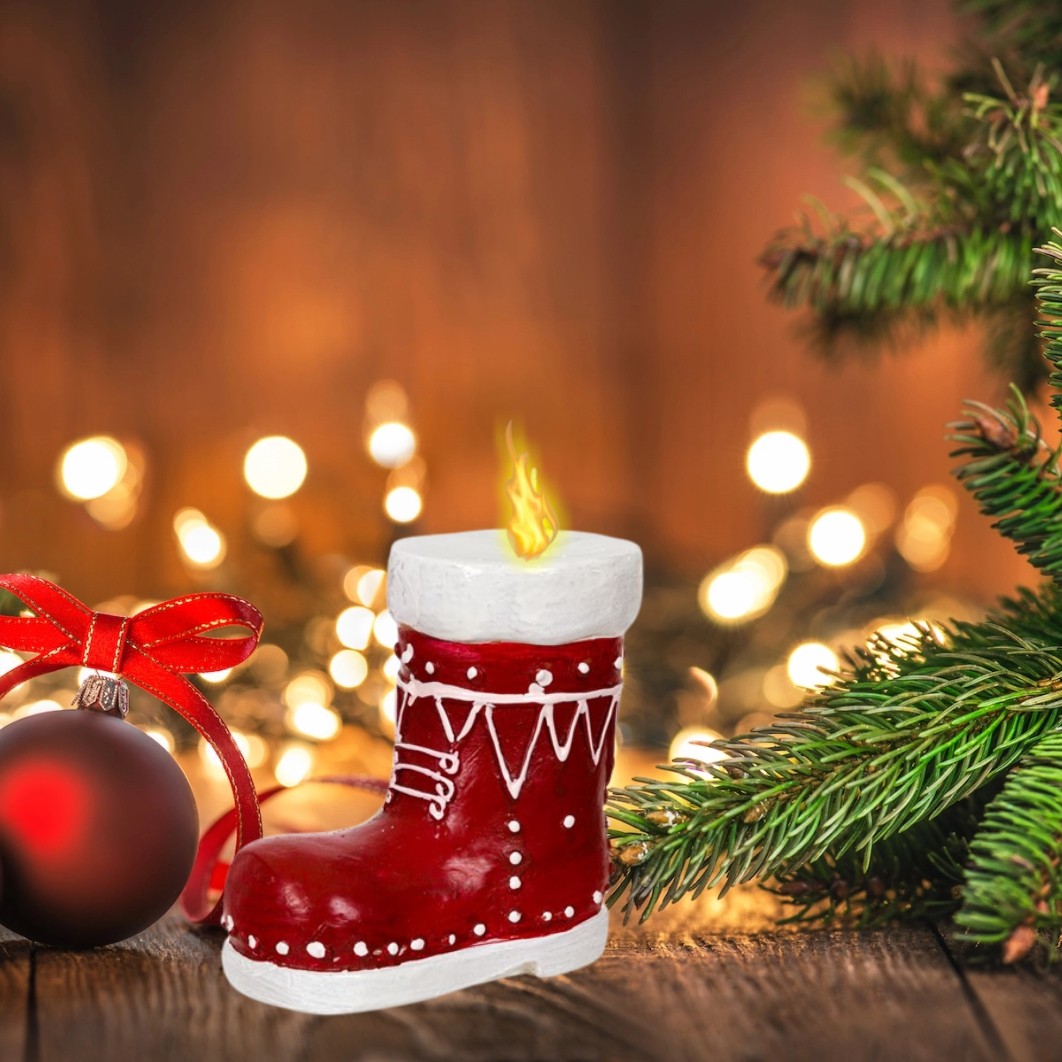 Decoratiune de Craciun, Lumanare, Cizmulita, Rosie, Modele, 10x5x12cm, DCJ243