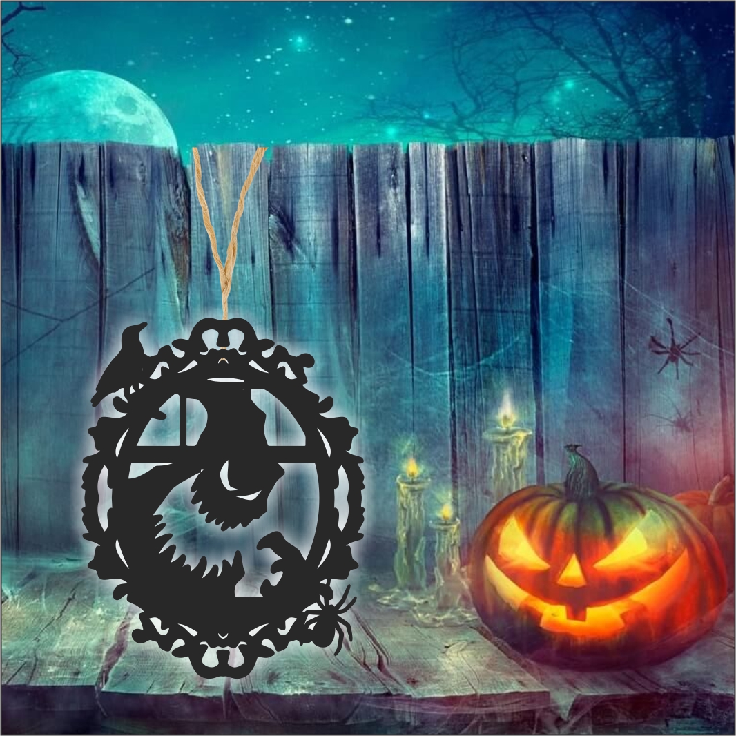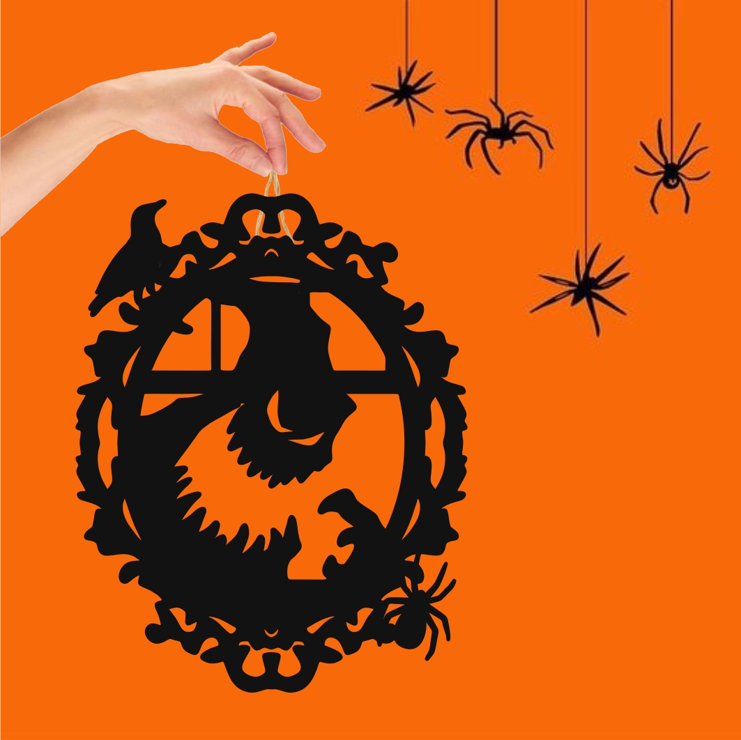 Decoratiune de Halloween, Lemn, Negru, 30×24 cm, DH032