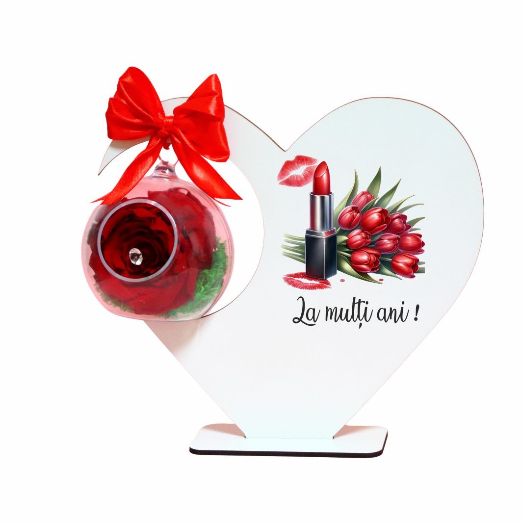 Construit din lemn durabil și finisat cu atenție, suportul beneficiază de culori vibrante datorită printului UV rezistent în timp. Lichenii verzi adaugă prospețime și naturalete, completând perfect intensitatea trandafirului criogenat roșu. Împreună, aceste elemente formează o piesă decorativă rafinată, ideală pentru aniversări, 1 Martie, 8 Martie, sărbători sau zile în care doriți să transmiteți apreciere și afecțiune.