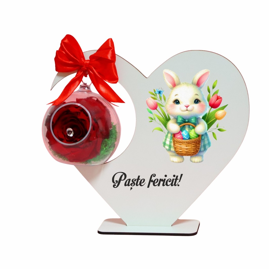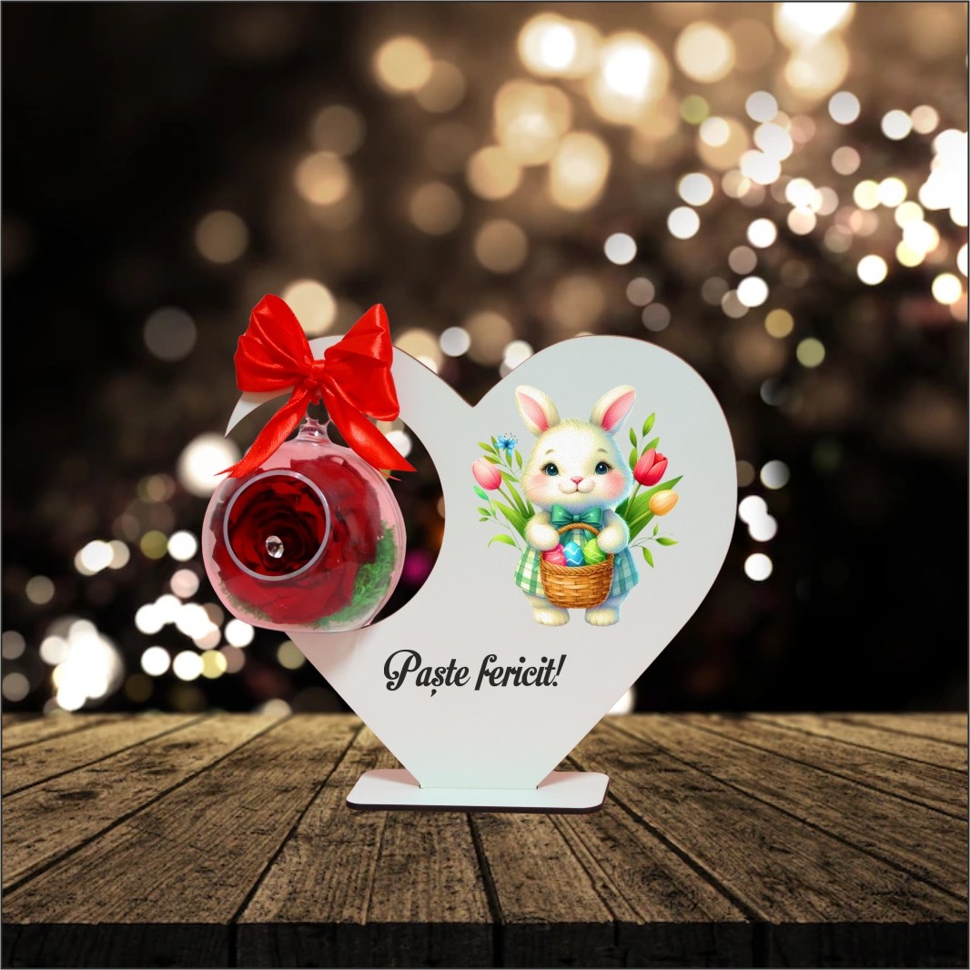 Această decorațiune trandafir criogenat este un obiect decorativ elegant și rafinat, creat pentru a transmite emoție, iubire și apreciere în cele mai frumoase momente ale anului. Realizată special pentru perioada Paștelui, decorațiunea îmbină armonios elemente naturale cu un design modern, devenind un cadou memorabil pentru persoanele dragi. Suportul este realizat din lemn în formă de inimă, colorat prin print UV multicolor, oferind un aspect vibrant și deosebit.