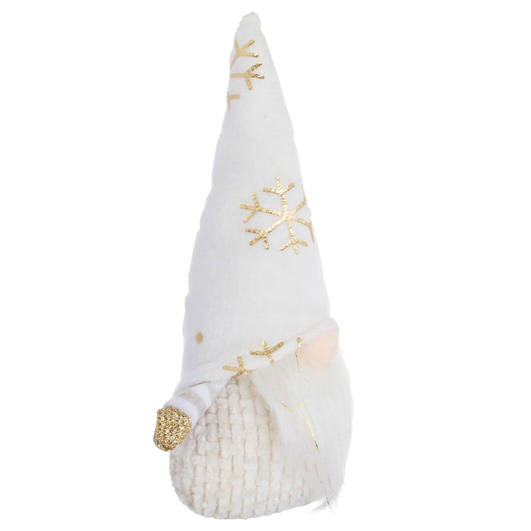 Figurina Craciun Gnome – Caciula Alba, Fulgi Aurii, 15cm (DCJ651)