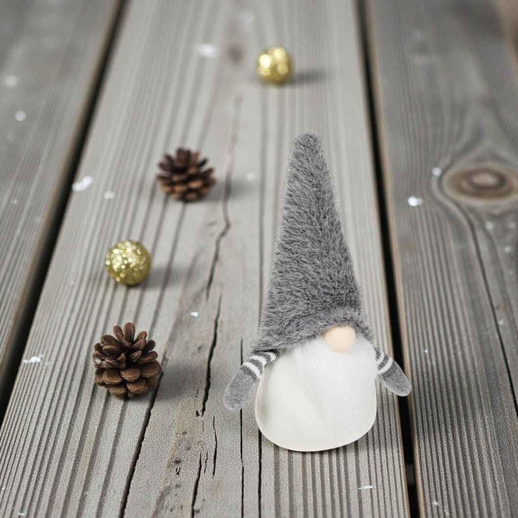 Figurina Craciun Gnome – Caciula de Blana Gri, 18cm (DCJ647)