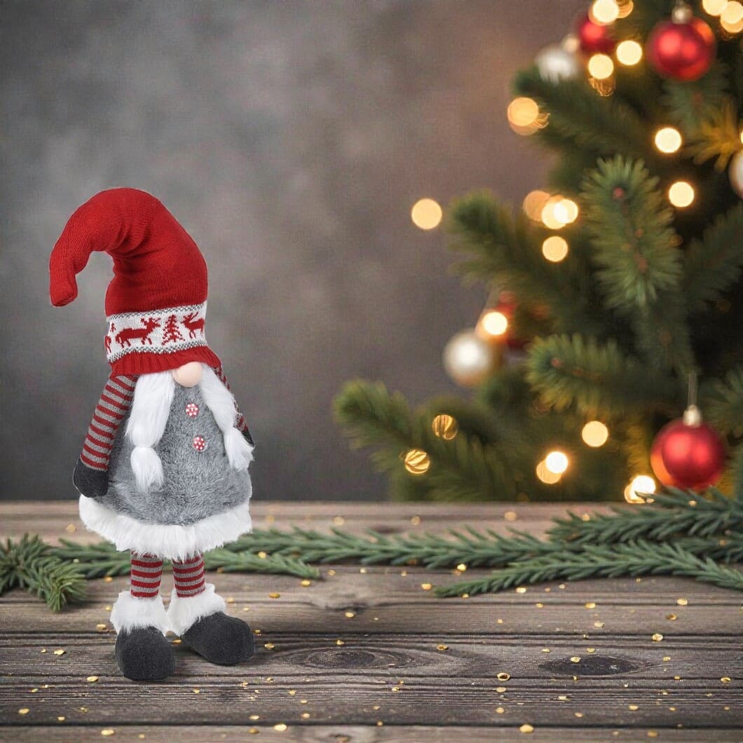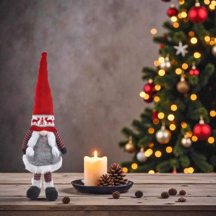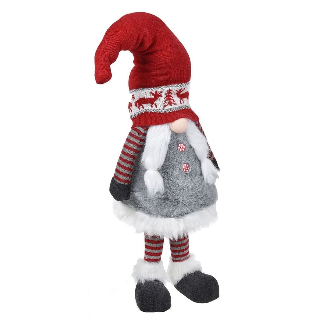 Figurina Craciun Gnome Codite Gri – Caciula Rosie, 90cm (DCJ691)