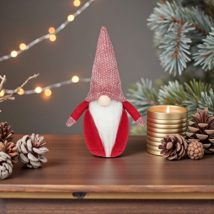 Figurina Craciun Gnome Rosu – Caciula Tricotata, 28cm (DCJ662)