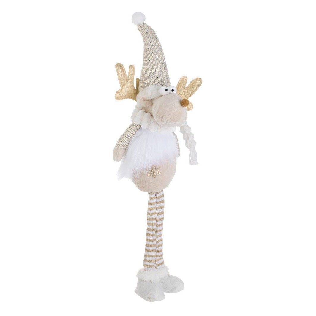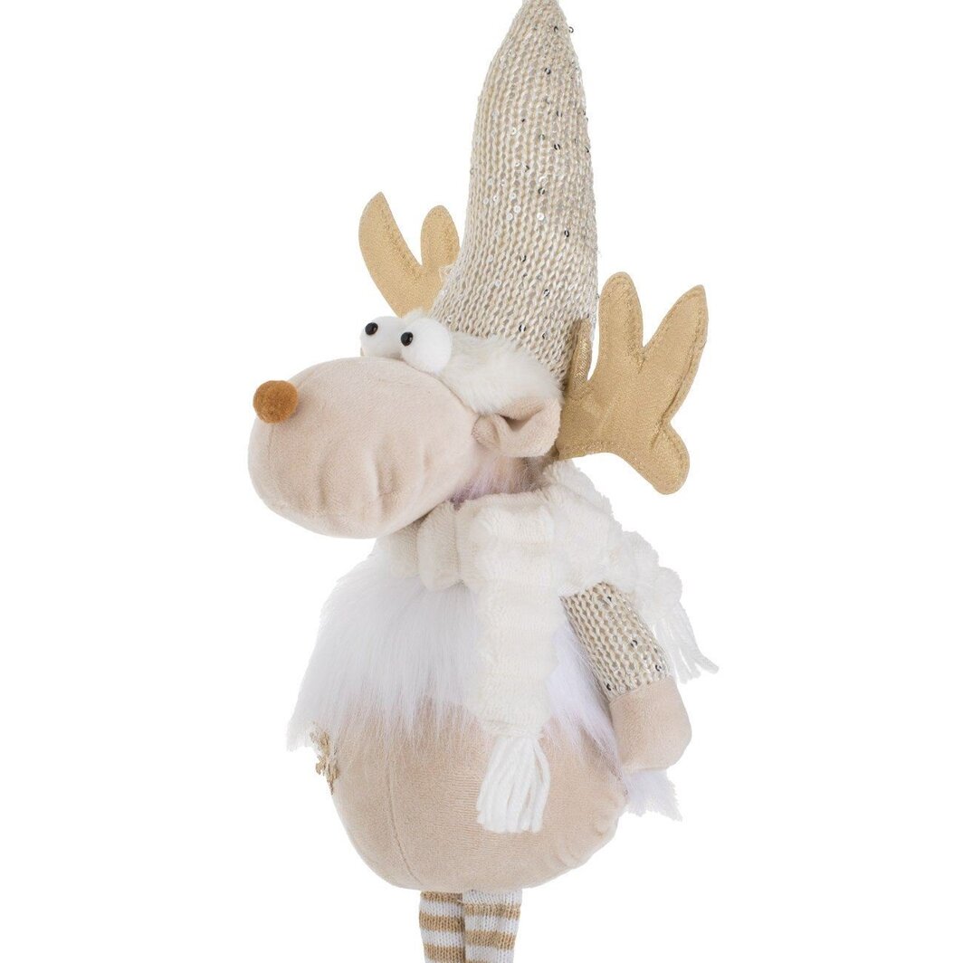 Figurina Craciun – Ren Ecru cu Caciula din Paiete, 65cm (DCJ633)