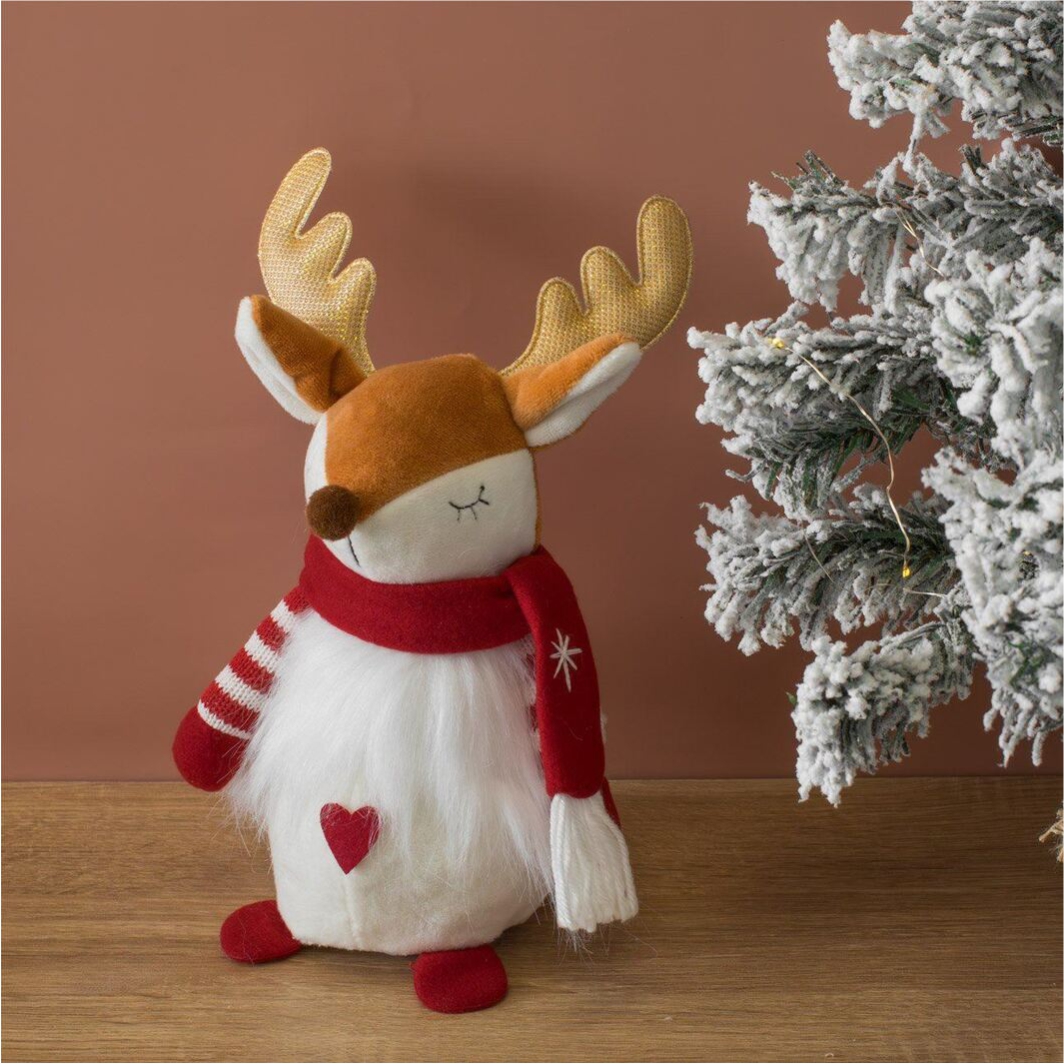 Figurina Craciun – Ren cu Fular Rosu, 28cm (DCJ630)