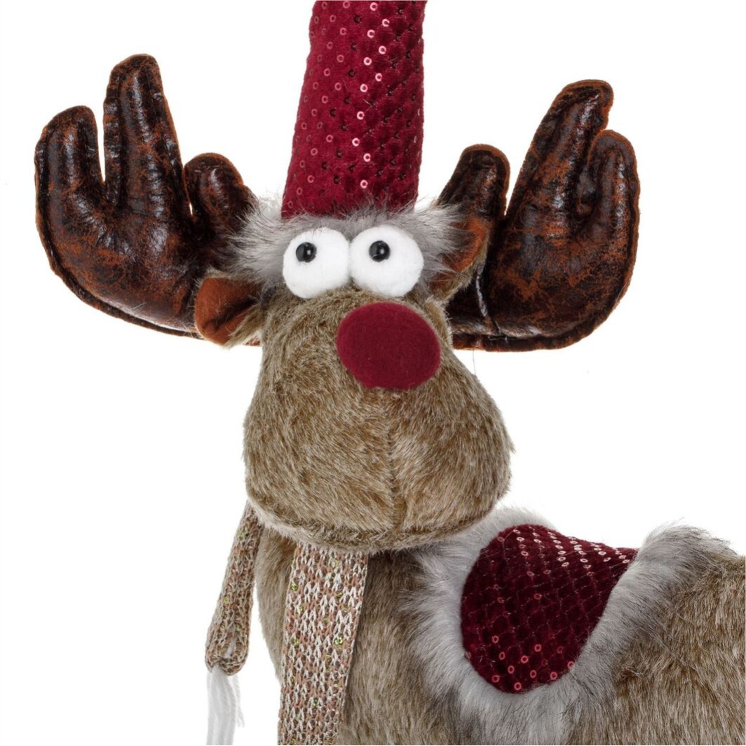 Figurina Craciun Ren Maro Caciula Bordo este o decoratiune realizată pentru a aduce farmecul autentic al sărbătorilor de iarnă în orice locuință. Creată cu atenție la detalii și finisaje premium, această figurină decorativă impresionează prin stil, calitate și versatilitate, fiind potrivită pentru expunere în living, hol, birou, vitrine comerciale sau în decorurile tematice de Crăciun.