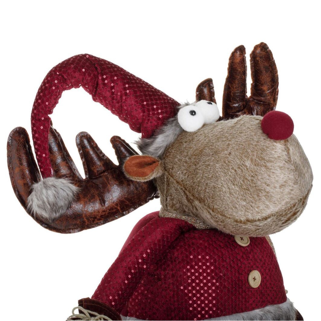 Figurina Craciun – Ren cu Sacou Bordo, Extensibil, 100-150cm (DCJ635)