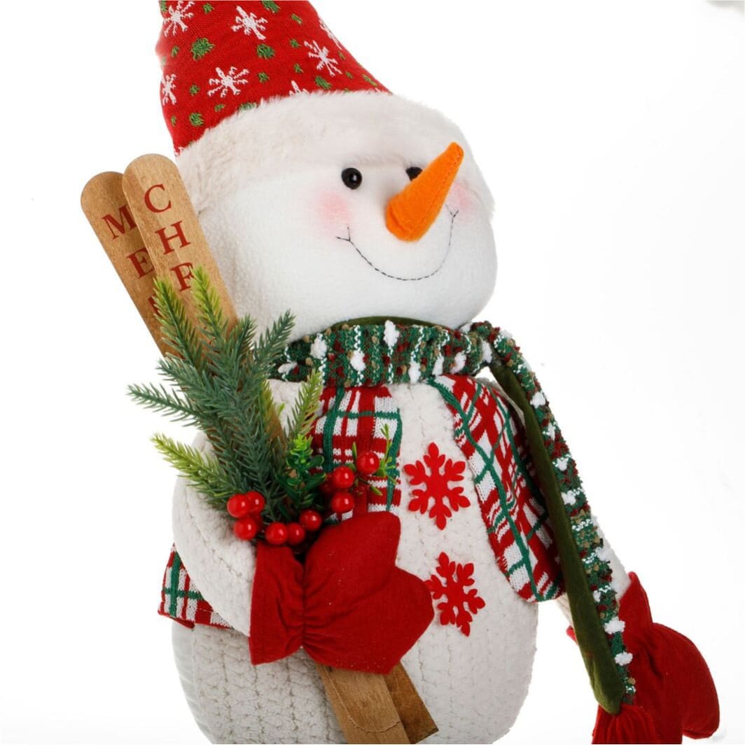 Figurina Decorativa Craciun – Om de Zapada, Alb cu Picioare Extensibile si Schiuri, 100-140cm (DCJ584)