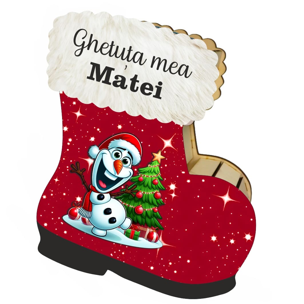 Crăciunul și Moș Nicolae vin cu emoție, bucurie și cadouri dulci! O ghetuță dulciuri realizată din lemn natural, cu un design adorabil și personalizare unică, este alegerea ideală pentru a aduce zâmbete copiilor. Modelul Rosie, Olaf transformă farmecul sărbătorilor de iarnă într-un cadou original și plin de culoare.