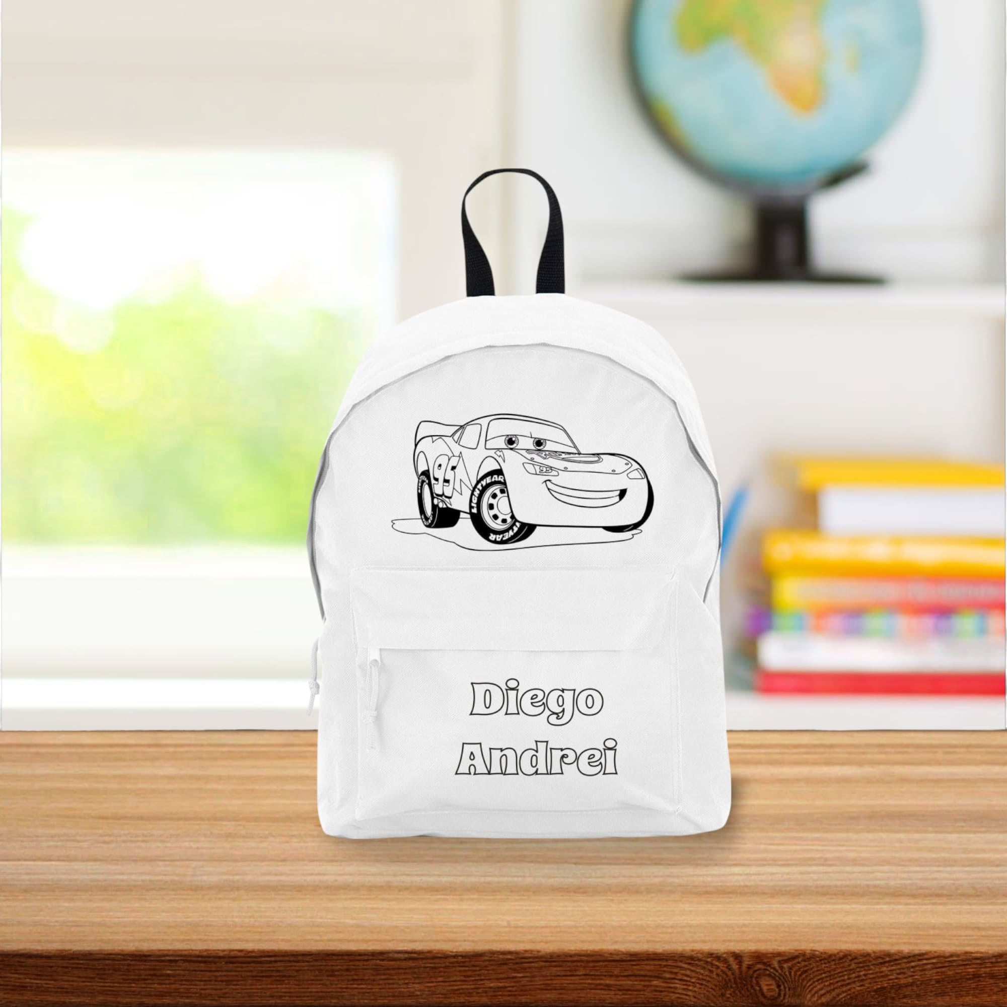 Ghiozdan personalizat cu nume, Scoala, Cars, 38×28 cm, Alb, GS010