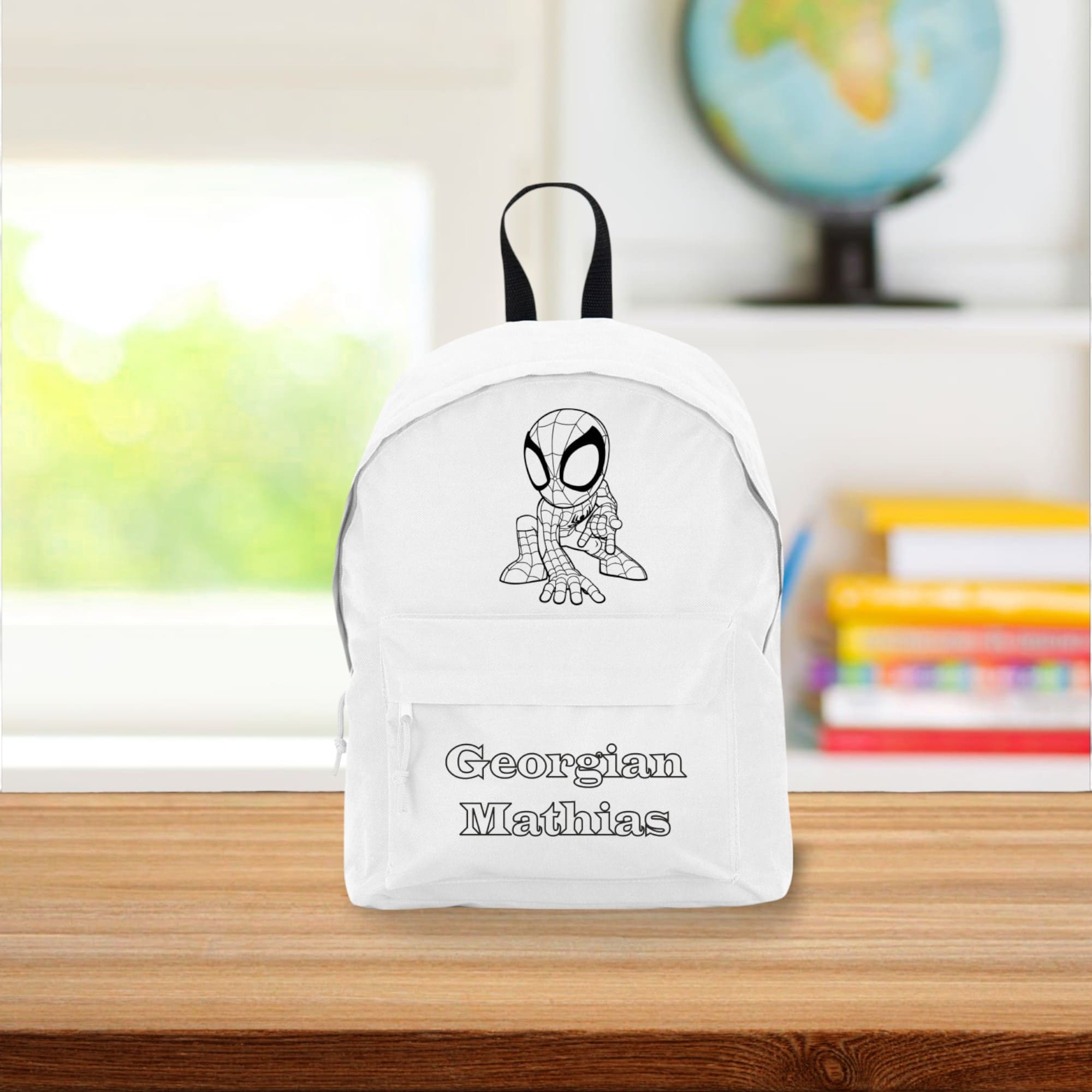Ghiozdan personalizat cu nume, Scoala, Spider-Man, 38×28 cm, Alb, GS007