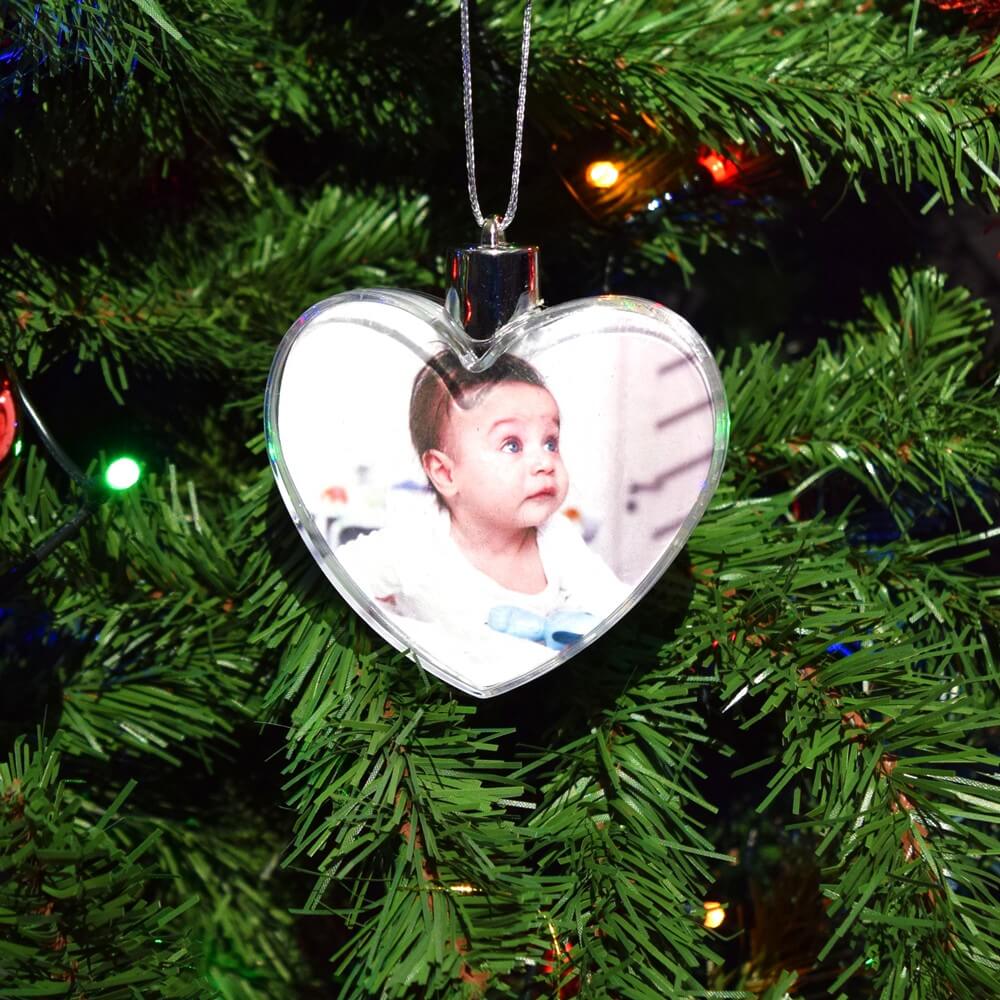 Glob de Craciun inima, Personalizat cu insertie foto, 8,5 cm, Gl158