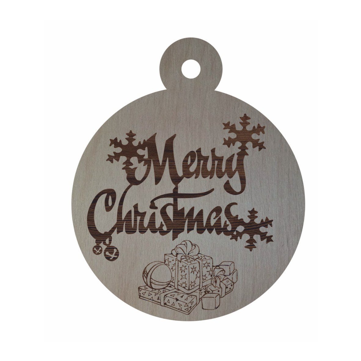 Glob de Craciun, Gravat, Lemn, Merry Christmas 9cm GL115