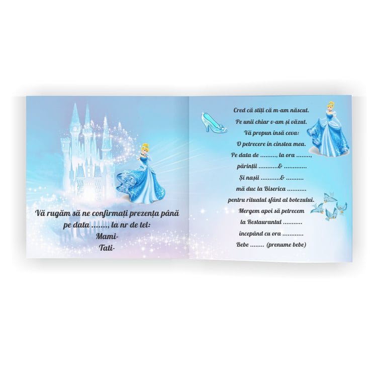 Fii primul care scrii o recenzie pentru „Invitatie botez, Cenusareasa, 16×15 cm, Carton, Model IC23”