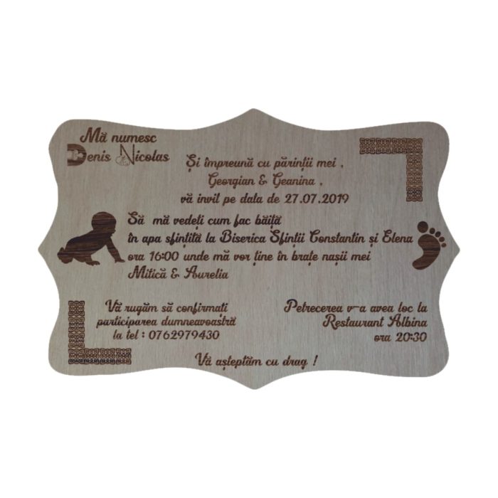 INVITATII de Botez din lemn cu grosimea de 4mml .