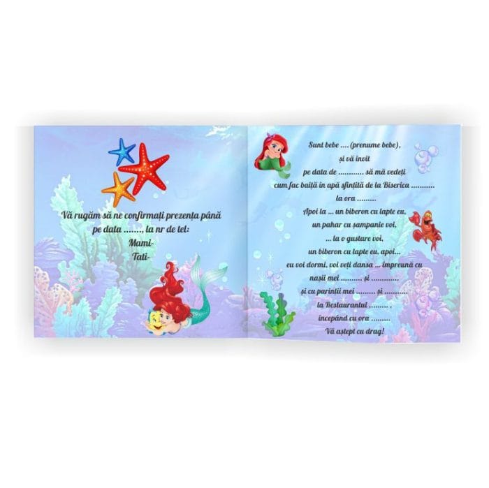 Fii primul care scrii o recenzie pentru „Invitatie botez, Mica Sirena, 16×15 cm, Carton, Model IC29”