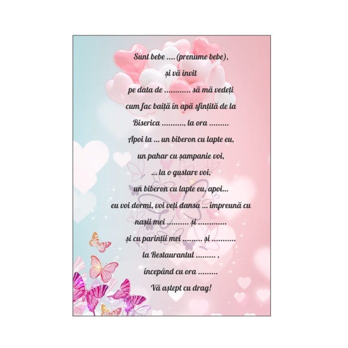 Fii primul care scrii o recenzie pentru „Invitatie botez, Model IC37 , Fluturi, Format A5”