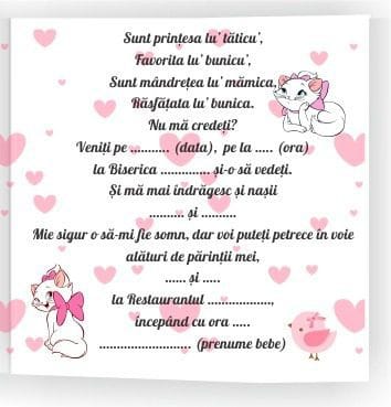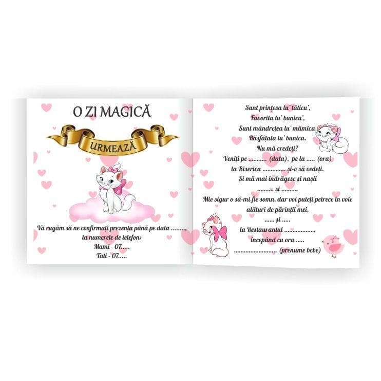 Fii primul care scrii o recenzie pentru „Invitatie botez, Pisica Marrie, 16×15 cm, Carton, Model IC16”
