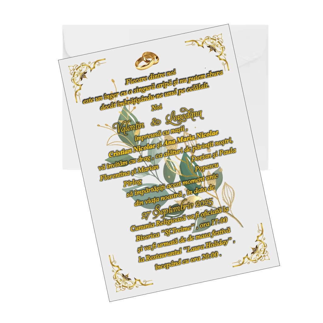 Invitatie Nunta, A5, Verde, INC005 Interval de prețuri: 4,99 lei până la 5,99 lei