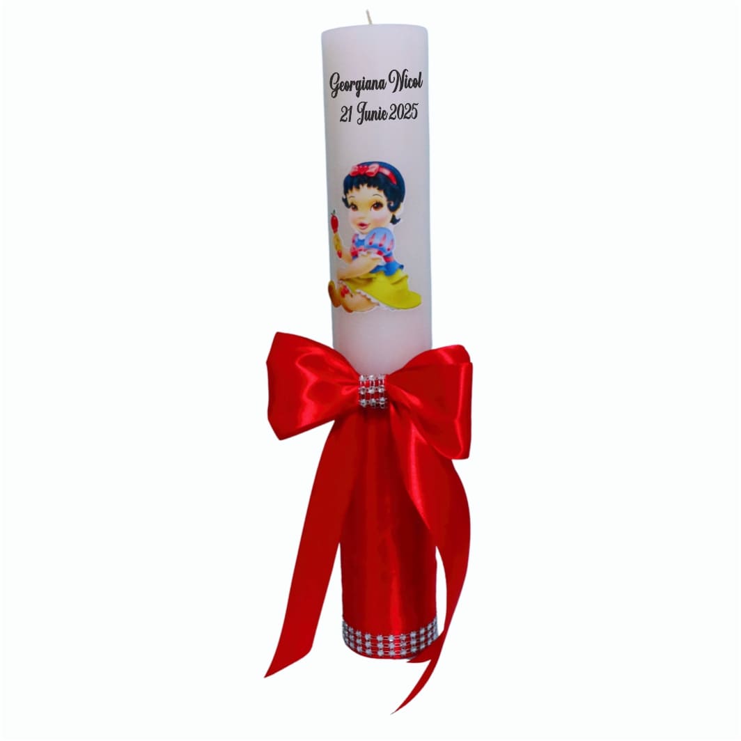 Lumanare Botez, Personalizata, Alba ca zapada, Rosu, 35 cm, LMB053