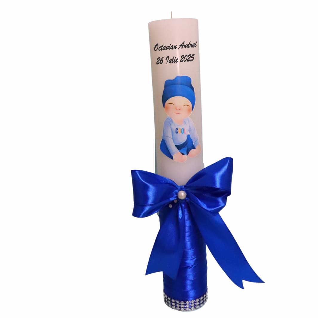 Lumanare Botez, Personalizata, Baby Boy, Albastru, 35 cm, LMB009