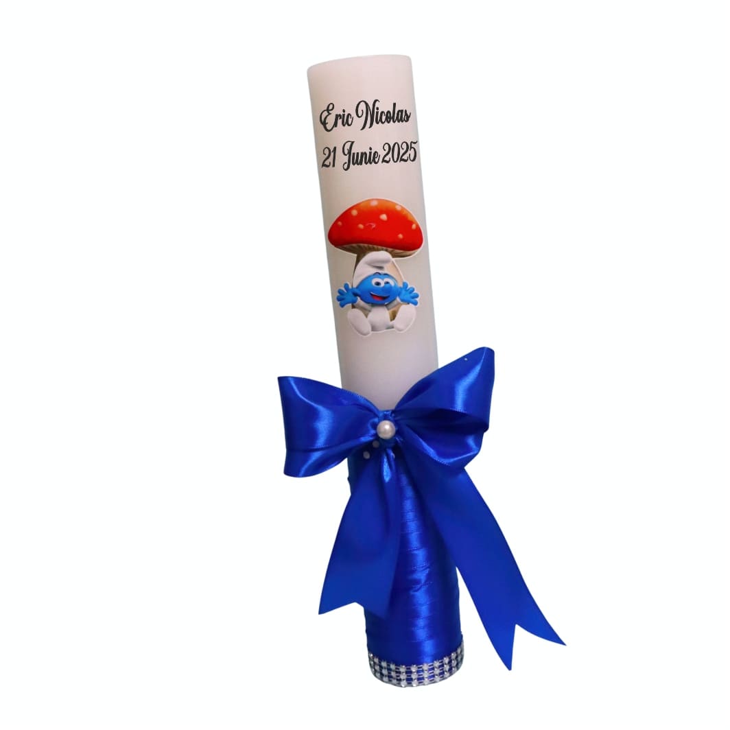 Lumanare Botez, Personalizata, Strumfita, Albastru, 35 cm, LMB046