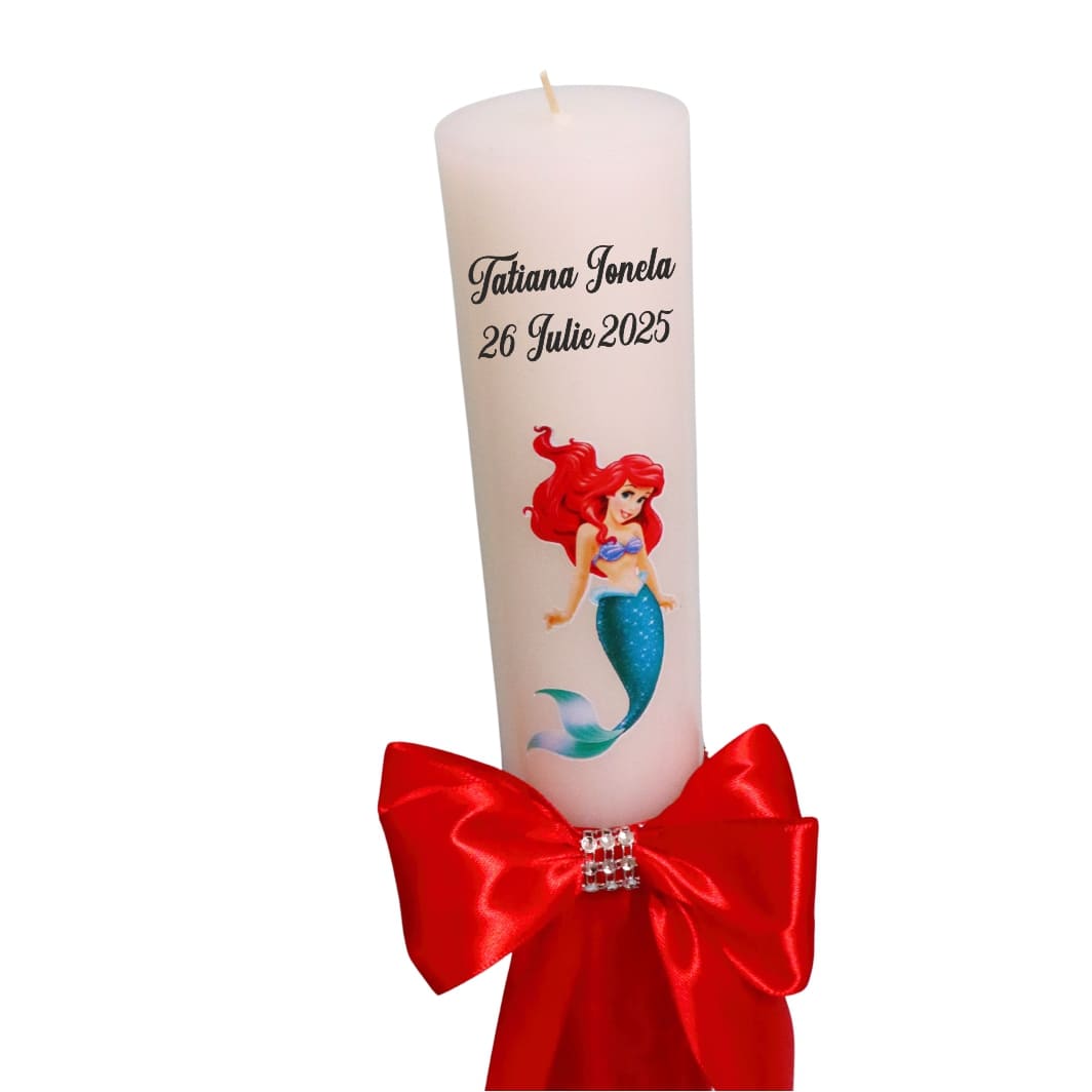 Lumanare Botez, Personalizata, Mica Sirena, Rosu, 35 cm, LMB027 Prețul inițial a fost: 120,00 lei.Prețul curent este: 99,80 lei.
