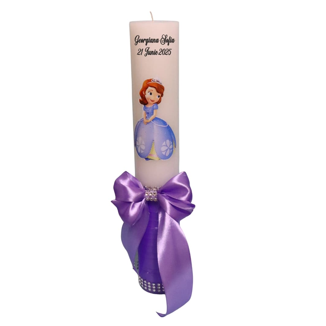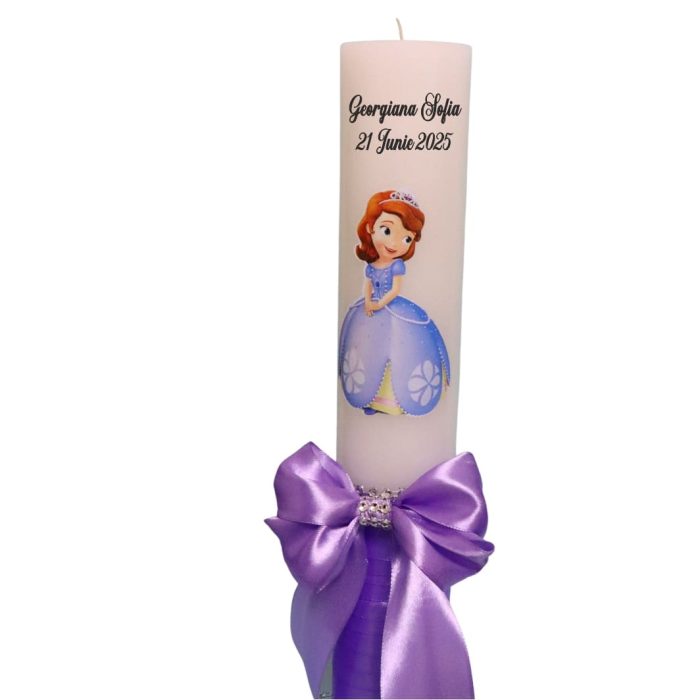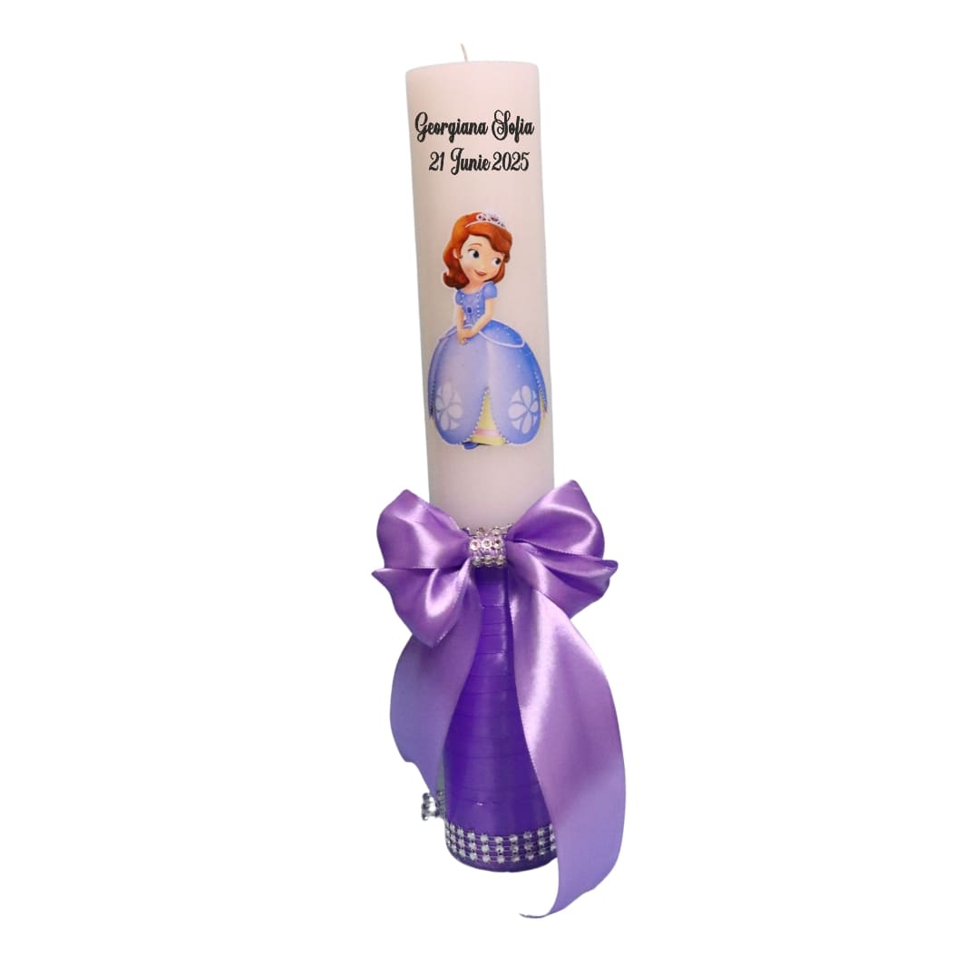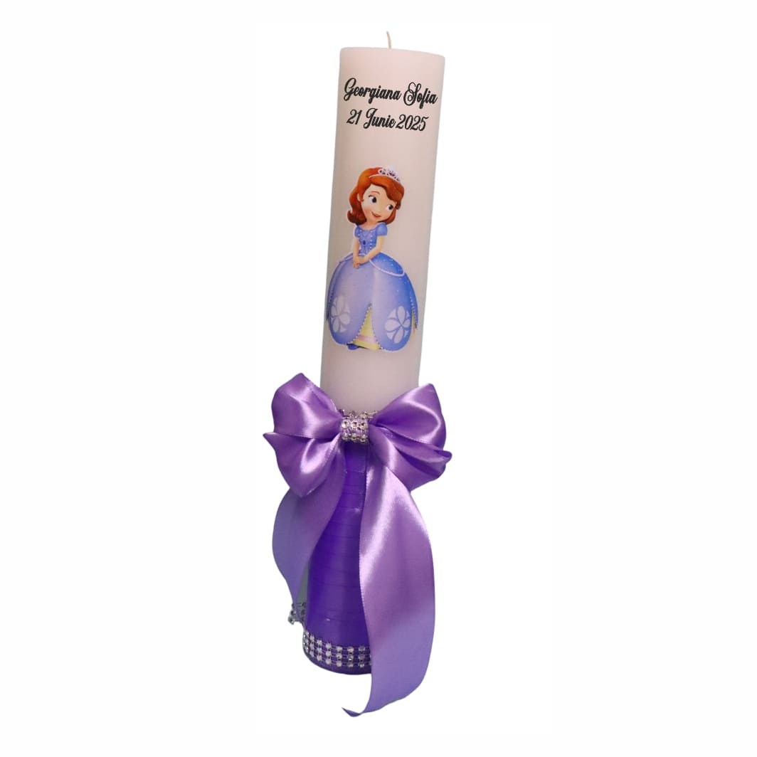Lumanare Botez, Personalizata, Printesa Sofia, Mov, 35 cm, LMB039