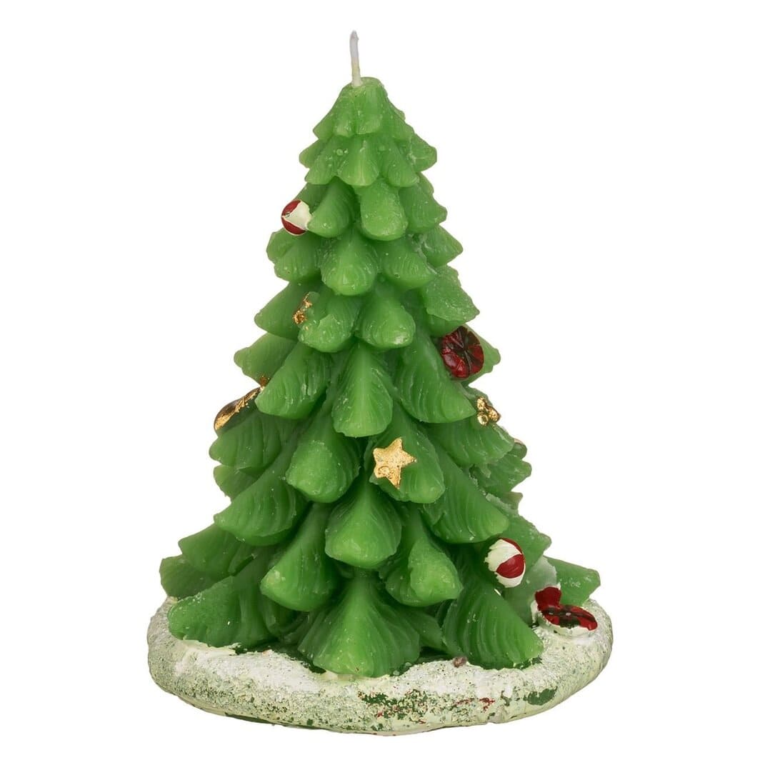 Lumanare Craciun – Model Brad Impodobit cu Mos Craciun si Cadouri, 13x10cm (DCJ532)