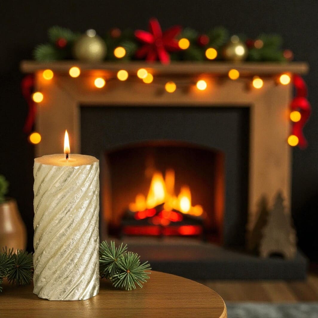 Așezată pe masă, polițe, comode sau lângă brad, lumanarea aduce lumină caldă și o notă festivă discretă. Este potrivită pentru seri liniștite,