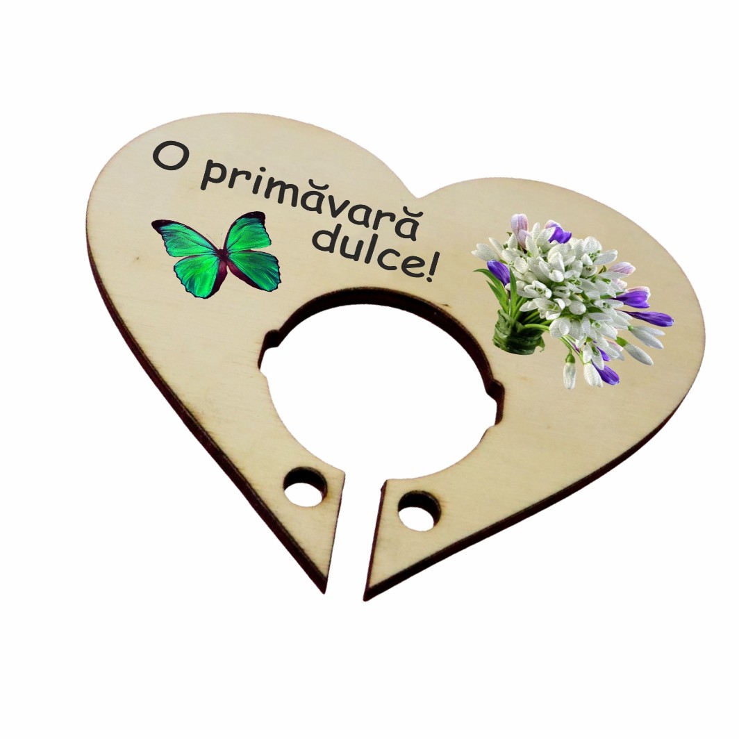Martisor, Baza acadea, Inima, Lemn, 10×8 cm, Primavara, BBUV007