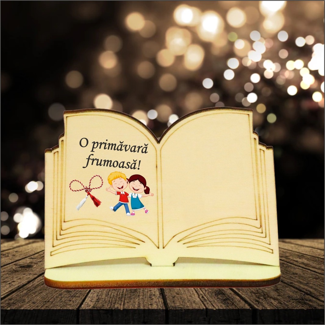 Martisor, Baza pentru flori, Carte, Lemn, Primavara, 10x7 cm, BMUV010 Prețul inițial a fost: 7,00 lei.Prețul curent este: 5,50 lei.