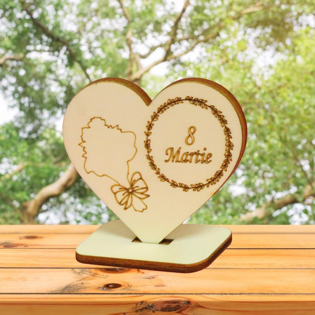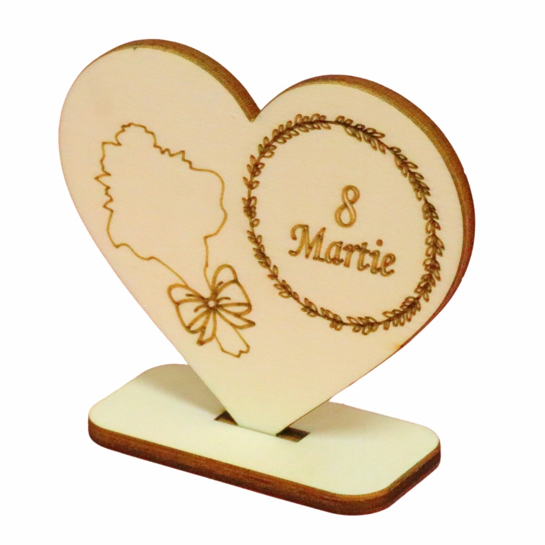Martisor, Baza pentru flori, Inima, Lemn, 8 Martie, Primavara, 10×8 cm, BM013