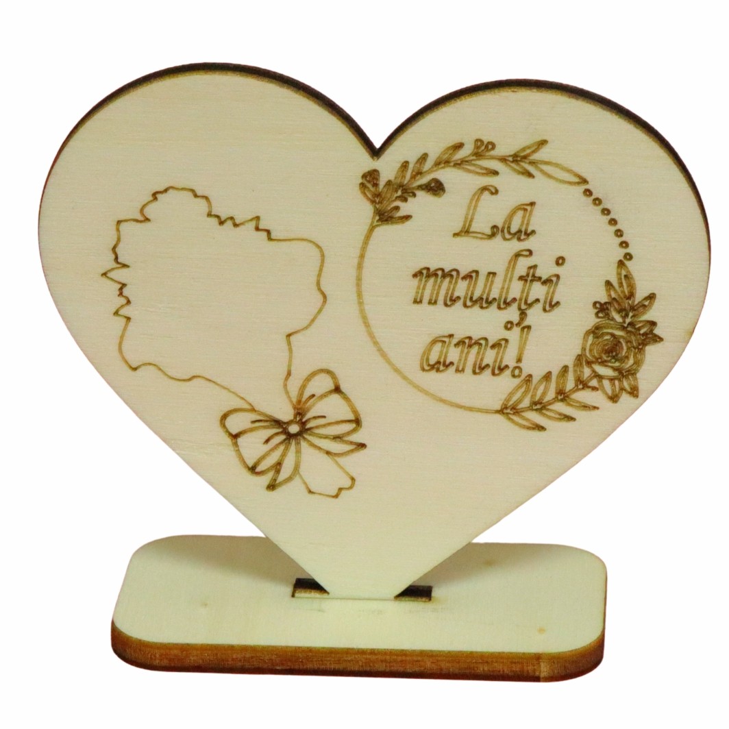 Martisor, Baza pentru flori, Inima, Lemn, La multi ani, Primavara, 10×8 cm, BM020